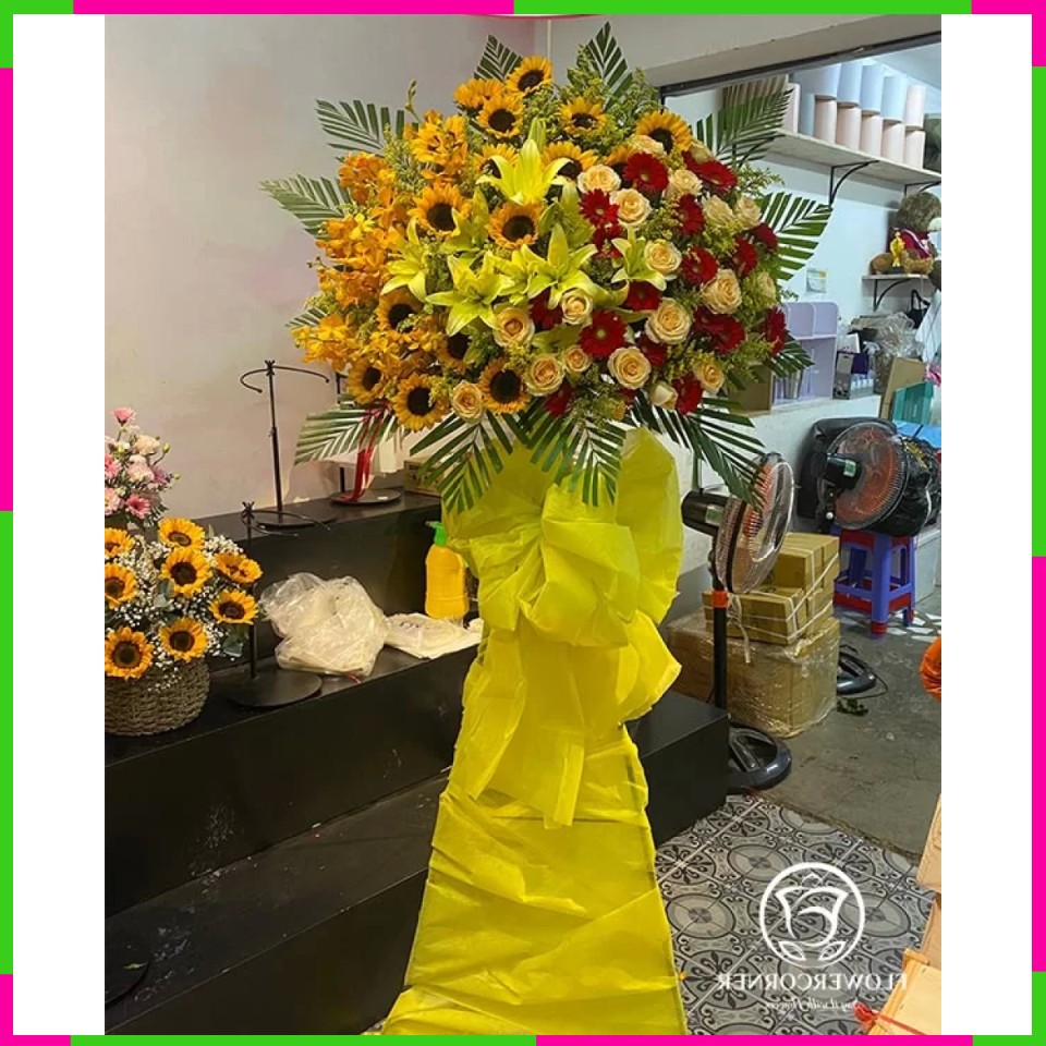Với tông màu vàng chủ đạo – màu của sự may mắn, thịnh vượng và thành đạt, kệ hoa là món quà ý nghĩa dành tặng đối tác, bạn bè trong dịp khai trương, khánh thành.